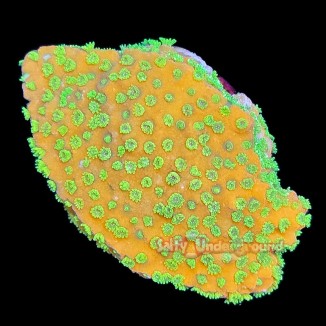 Montipora corals are sometimes referred to as the vase coral or velvet corals. They are some of the most well known and most widely aquacultured SPS corals. They are reef safe and peaceful; like many other SPS corals, the Montiporas do not use sweeper tentacles to sting surrounding neighbors. Montiporas can typically be placed in close proximity to other specimen without any negative effects. Montiporas typically prefer higher flow and lighting but will adapt to a number of different conditions. This is one of the easiest SPS corals to grow and is considered a very fast grower with the right parameters. This specimen is a plating Montipora and will form into large flat plate structures sometimes resembling a vase, hints the nickname.