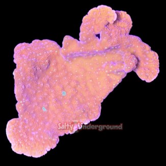 Montipora corals are sometimes referred to as the vase coral or velvet corals. They are some of the most well known and most widely aquacultured SPS corals. They are reef safe and peaceful; like many other SPS corals, the Montiporas do not use sweeper tentacles to sting surrounding neighbors. Montiporas can typically be placed in close proximity to other specimen without any negative effects. Montiporas typically prefer higher flow and lighting but will adapt to a number of different conditions. This is one of the easiest SPS corals to grow and is considered a very fast grower with the right parameters. This specimen is a plating Montipora and will form into large flat plate structures sometimes resembling a vase, hints the nickname.