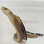 The Blackedge Moray Eel is also known as a Ocellated Moray eel. This saltwater eel can grow to two feet in length. This is known to be one of the most outgoing and active Eels kept in the hobby. It is best to keep the Blackedge eel in an aquarium with a lid to keep them from jumping out. The Moral Eel is a solitary animal, one to an aquarium! Must be kept with other large, aggressive fish or alone for best result.