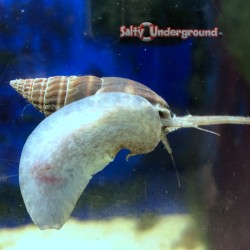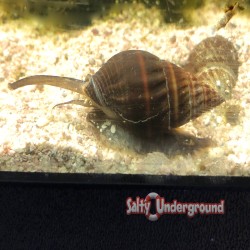 These Nassarius snails are great reef scavengers specializing in consuming uneaten meaty fish food. They will not eat detritus or healthy animals. They can live for years in an aquarium if well fed. They live in the sand and emerge to eat. These snails can flip themselves over.