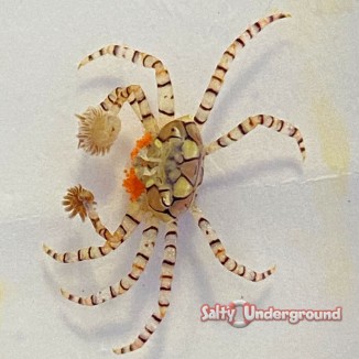 The Pom Pom Crab carry anemones on their claws to use as a defense, as well as to pick up food of rocks and the substrate. If it loses an anemone they will pick off another piece from an anemone in the aquarium. If there is not one, they may take a small part of mushroom or whatever they can find. It will not affect the anemone in anyway. Their diet consists of meaty food as well as some algae.