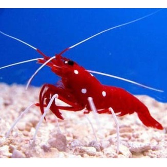 The Fire Shrimp is also known as Blood Shrimp or Scarlet Cleaner Shrimp. It is one of the most popular shrimp in the aquarium hobby. It has a blood-red body with white spots and long white antennae. They eat any form of fish food. Drip acclimate for about 30 minutes with the goal tripling the water volume in the bag during that time.