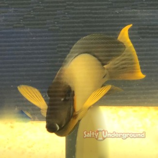 The Chocolate Tang, sometimes referred to as a Mimic Tang is a semi-aggressive fish. They can grow up to 8 inches and will require an aquarium of at least 120 gallons or more with plenty of swim room as well as rock work to forage and hide in when they feel threatened. This tang will get along with other fish, but it may become territorial with other tangs. It is an herbivore and benefits from foods that include algae or supplemental algae sheet feedings.