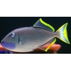The Blue Jaw male has the blue jaw for which the fish is named. The Blue Jaw Triggers can be a semi-aggressive fish, but ironically shy. They need a tank size of at least 125 gallons to pace back and forth, with lots of rocks and caves to give the Blue Jaw places to hide and explore. Make sure your rock work is solid as triggers tend to move them when wedging into hiding places. Triggers eat a variety of meat such as mysis, brine, and other meaty food. They will need hard shell foods such as clams to help keep their teeth filed down. They are very active and may require feeding more than once a day.
