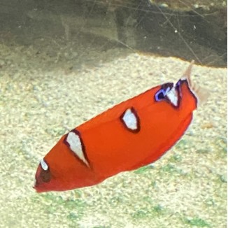 The juvenile Red Coris Wrasse is also called a Clown wrasse due to its coloring. They need to be in a tank of 125 gallons or more with 2-3 inches of soft substrate. They are semi-aggressive to other fish. Once in their adult stage they will look completely different with speckles and new colors. The Coris wrasse likes a diet of small invertebrates such as snails, clams, and on the occasional corals. They do require more than one feeding a day, as they are very active.