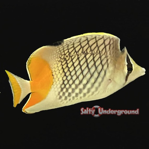 The Pearlscale Butterflyfish is a peaceful fish and can get up to 6 inches. They will need an aquarium of at least 90 gallons with plenty of live rock to hide and graze on. They are not considered reef safe as they are known to nip soft and stony corals. They should be housed with other peaceful fish. If you want to house with the same species, they should be introduced at the same time. Their diet consists of meaty foods, freeze-dried, fresh or flake food.