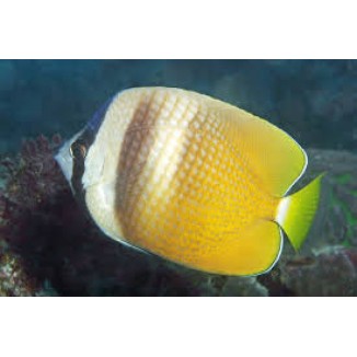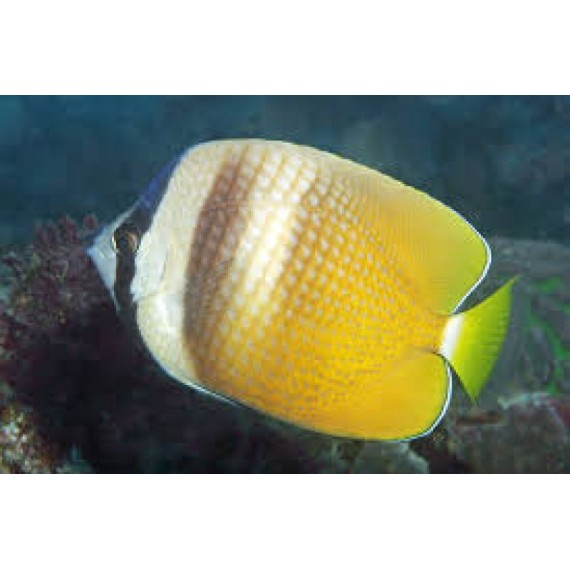 Klein's Butterflyfish is also called Sunburst Butterflyfish, Blacklip Butterflyfish, and Orange Butterflyfish. This is a very hardy fish and good for a beginner. They will need plenty of rocks to swim through and hide when they feel threatened. They can reach up to 6 inches and will require at least 120 gallons or more. They are not exactly reef safe since they will eat leather corals as well as soft corals. Their diet will consist of meaty foods like mysis, frozen shrimp, crustaceans.