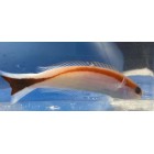 The Skunk Tilefish has an elongated, white and red stripe body. The eyes also have a slight blue tint that further adds to the appeal of this species. It is a peaceful fish that will make a beautiful addition. They can grow up to 5 inches and will need an aquarium of at least 50 gallons with a fitted lid as they are known to jump. They can be in pairs as they usually do in the wild. Their diet consists of brines, mysis, and other meaty foods as well as high quality flakes and pellets.