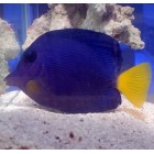 The Purple Tang, Zebrasoma flavescens, can grow up to 10 inches and will require an aquarium of at least 125 gallons with plenty of swim room as well as rock to hide and forage from. They can be aggressive towards other fish with similar shape and color as well as other tangs like them. Their diet consists of marine algae, seaweed, and veggies. They are even known to eat meaty foods other fish are offered.