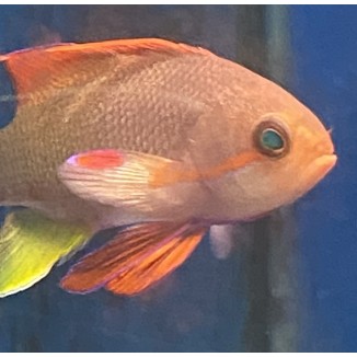 Their diet consists of frozen mysis and shrimp but will take high quality flakes as well.  Anthias should be fed several times daily.