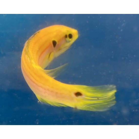 The Yellow Candy Hogfish is a very peaceful fish. They can grow up to 4 inches and will require an aquarium of at least 30 gallons with plenty of hiding spots. They are for the most part reef safe. When matured they may go after ornamental shrimps placed after them. Their diet consists of mysis, brines, and other meaty foods. They will also sometimes take high quality flakes and pellets.