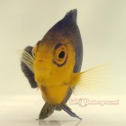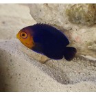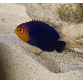 The Pygmy Cherub Angelfish is a semi aggressive fish with beautiful blue and orange coloring. They can reach up to 3 inches and will require an aquarium of at least 55 gallons with plenty of rock for hiding and foraging. They are not considered reef safe as they could nip and soft and stony corals. There should never be more than one pygmy angel in the same aquarium unless they are a pair. Their diet consists of marine algae, spirulina, mysis, brines, and will take high quality flake and pellet foods.