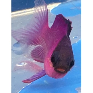 The Blackcap Basslet is a semi-aggressive fish and can grow up to 4 inches. This fish will require an aquarium of at least 30 gallons with plenty of rocks to hide in. The Blackcap is reef safe. Once they are established they should be the only Basslet in the aquarium due to territorial issues. Their diet consists of mysis, brine, and other meaty foods. They may also take high quality flake and pellet foods.