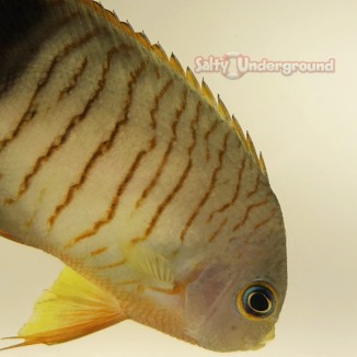 The Eibli Angelfish or also known as the Red Stripe Angelfish, a semi-aggressive dwarf angelfish. They require at least 70 gallons or larger aquarium with live rock for hiding and grazing. They are peaceful with other fish but should be the only dwarf angelfish in smaller aquariums. Place with caution as they may occasionally nip at sessile invertebrates and clam mantles. It is extremely difficult to breed in an aquarium, and there are no distinguishing characteristics that help differentiate males from females. Their diet consists of Spirulina, marine algae, mysis, and other meaty foods.