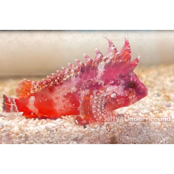 The Pygmy Rooster Waspfish is a rare find in the hobby. They have beautiful molding of red and white. They can grow up to 3 inches and will require an aquarium of at least 30 gallons with plenty of rock to hide and perch on. They are an aggressive fish and should not be with smaller fish than itself as they may become a snack. They can be kept in mated pairs. Their diet consists of mysis, brine, and other meaty or live food. When first introduced into the aquarium they may need to be target fed live foods.