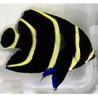 This French Angelfish has a body that is a dark, dusky-blue with yellow margins. This Angel will be a large one! They can reach up to over a foot long and will require an aquarium of at least 250 gallons with large amounts of live rock for hiding and grazing. These are not considered reef safe as they may nip at sessile invertebrates (soft and stony corals) and clam mantles. They are known to become the dominate ones of the aquariums, so it may be a good idea for it to be put last. Their diet consists of marine algae, spirulina, mysis, brines, and may take high quality flake and pellet foods.