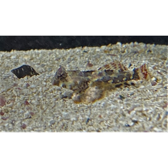 Our Scooter Blenny or Dragonette is an interesting fish. This fish can reach up to 5 inches and will require a well-established aquarium of at least 30 gallons with plenty of rock to hide, forage, and perch on. The Scooter Blenny eats live pods in the reef aquarium and frozen food. This Scooter Blenny is a peaceful fish and should not be housed with fish that it will have to compete with for food. Their diet consists of brines, mysis, and other small meaty or live foods.
