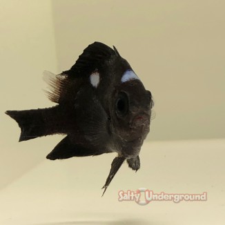 The Domino Damsel is an aggressive fish. They can reach up to 5.50 inches. They do best in aquariums of at least 30 gallons and plenty of rock work to hide in. This damsel is peaceful when small but with age they will grow more aggressive. The Domino Damsel should be placed with larger fish than itself. Their diet consist of mysis, brines, and other meaty foods. They may take high quality flake and pellet foods.
