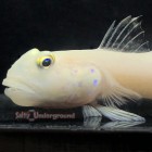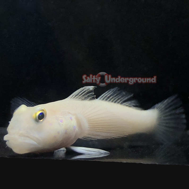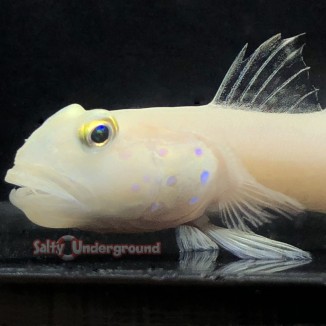 the Blue Spot Sleeper Goby can reach up to 6 inches and will require an aquarium of at least 30 gallons with rock and a good amount of substrate. They are very busy sand sifters. They are a very shy and timid fish and a lid is required as they like to jump. They are not aggressive to other fish but may become aggressive towards others of its kind unless they are a mated pair. Their diet consists of mysis, brine, and other meaty food. Some may take some high quality flake and pellet food.