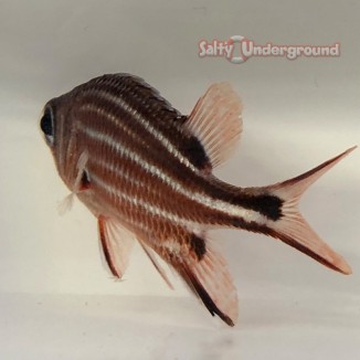 The Candy Cane Squirrelfish is also known as the Hawaiian Squirrelfish. They are bright vibrant red with horizontal striping down the body and can reach up to 8 inches. They benefit from an aquarium of at least 70 gallons with plenty of rock to hide in as well as plenty of room to swim. Candy Cane Squirrelfish can be kept with others of their own kind if the aquarium of at least 200 gallons. The Candy Cane Squirrelfish is not considered reef safe as they will eat worms, serpent stars, and crustaceans. Their diet consists of mostly meaty foods as well as high quality flake and pellet food.