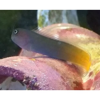 The bicolor blenny has unique looks and a fun personality. It has a blue in front and bright yellow in back. It has oversized eyes, and typical body shape of the Ecsenius family. They can be seen perching onto rocks and popping out of holes to say hello. They can reach up to 4 inches and require an aquarium of at least 30 gallons with plenty of rock. Their diet consist of mysis, brines, and other meaty foods. They may take high quality flake and pellet foods.