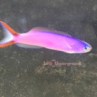 The Purple Tilefish has a vibrate purple/pink hue with a striking red and white tail. The eyes also have a slight blue tint that further adds to the appeal of this species. It is a peaceful fish that will make a beautiful addition. They can grow up to 5-6 inches and will need an aquarium of at least 50 gallons with a fitted lid as they are known to jump. They can be in pairs as they usually are in the wild. Their diet consists of brines, mysis, and other meaty foods as well as high quality flakes and pellets.