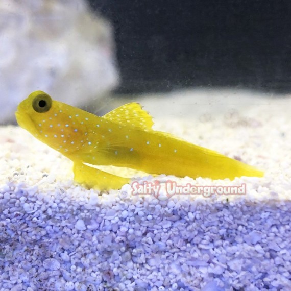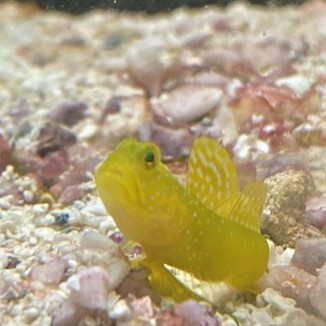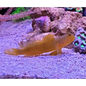 This Yellow Watchman Goby is a fascinating reef fish. Watchman Gobies have a symbiotic relationship with pistol shrimp in that they are the lookouts, and the shrimp are the burrow diggers/keepers. Watchman Gobies are a peaceful saltwater fish but may fight with each other as they mature. They can reach up to 4 inches and will require an aquarium of at least 20 gallons. Their diet consists of mysis, brine, and other meaty food. They will also take high quality flake and pellet food.