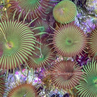 Palythoa polyps are easy to keep in the aquarium which makes them a good choice for beginner reef aquarists. With stable water parameters, Palythoas will reproduce easily in the reef aquarium by budding which will steadily increase the size of the colony as they attach on to rockwork. They contain the symbiotic algae zooxanthellae which will provide almost all of their nutritional requirements. It is not necessary to direct feed Zoas/Palys. These corals can withstand a very wide range of lighting and flow conditions and may be placed in several different sections of the aquarium with success.